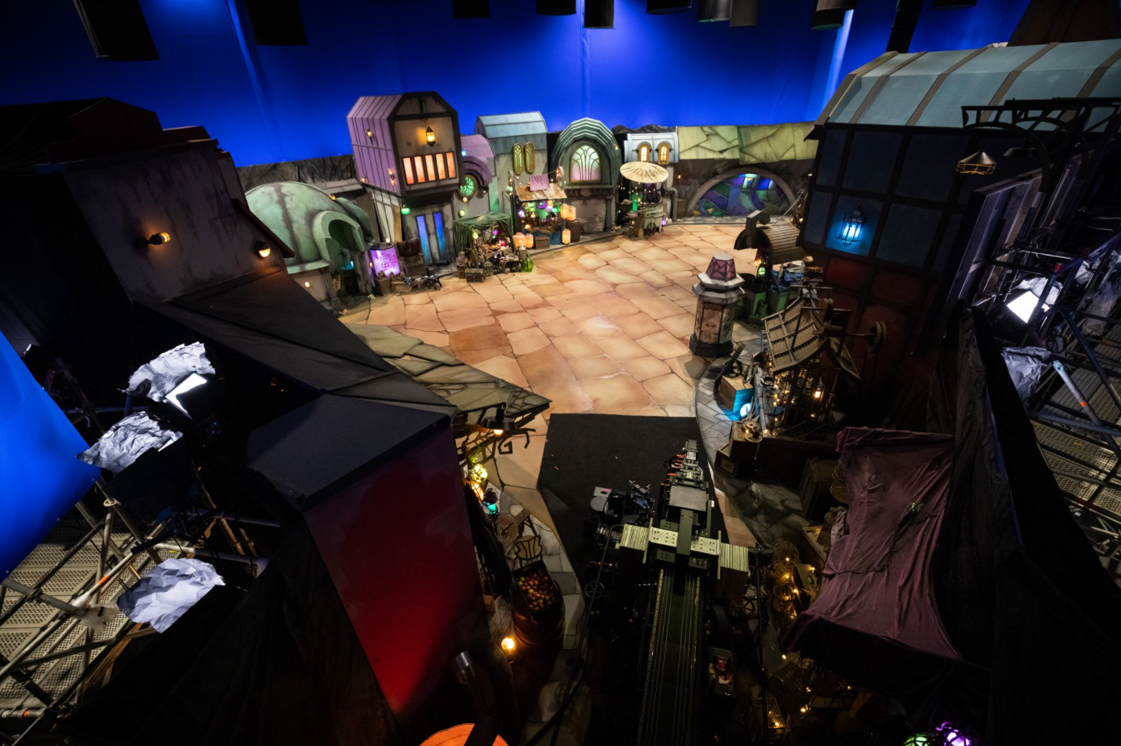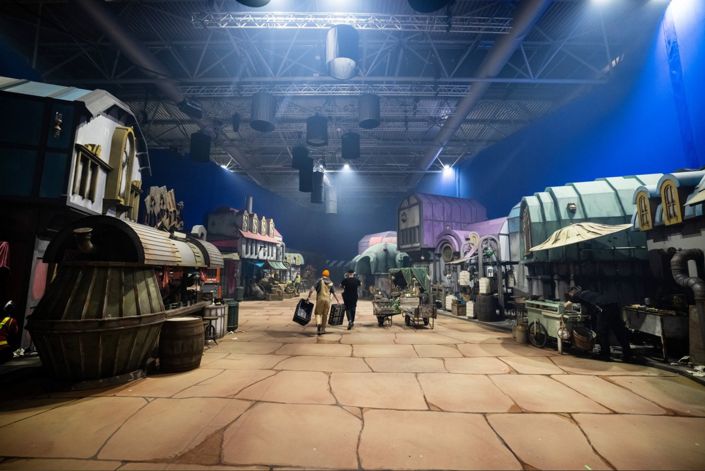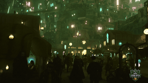 At the same time, it was important that the world we saw here was a natural extension of the one audiences would come to know in Arcane, so tremendous effort was taken to evoke the style and aesthetic of the series. On the other end of the marketplace, an animated Vi carries us back into a CG world to continue her search for Jinx, but hopefully the lines between live action and CG have started to blur a little in the audience's mind.
