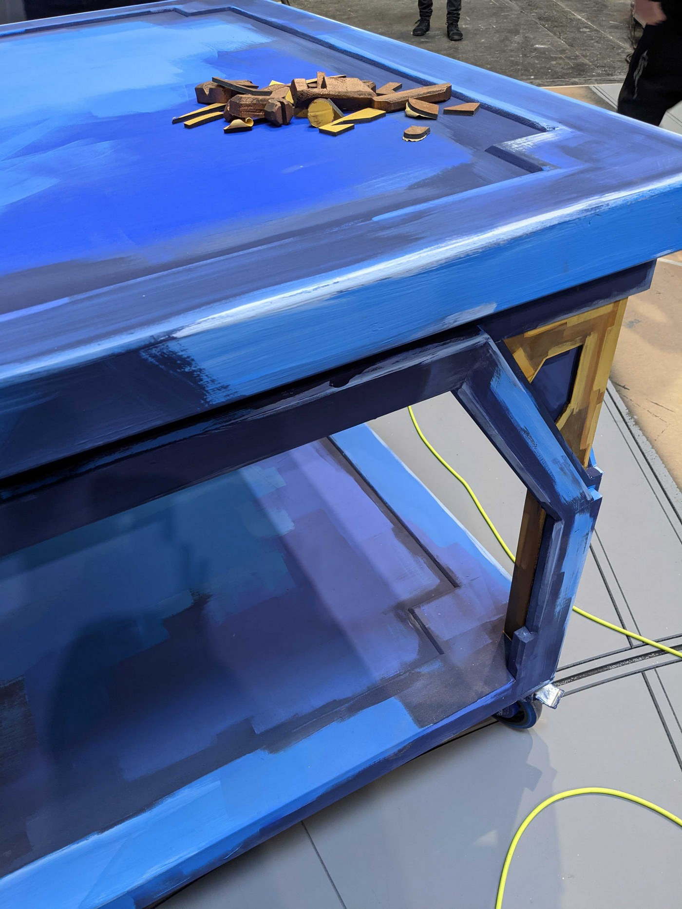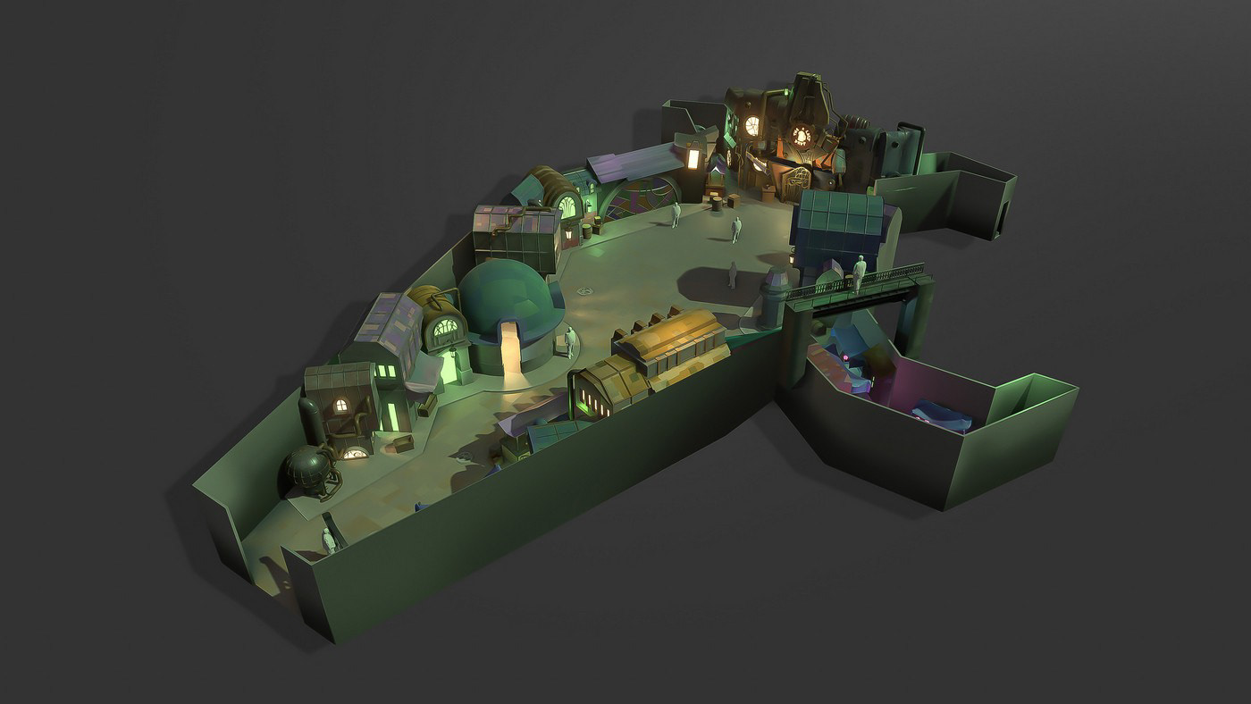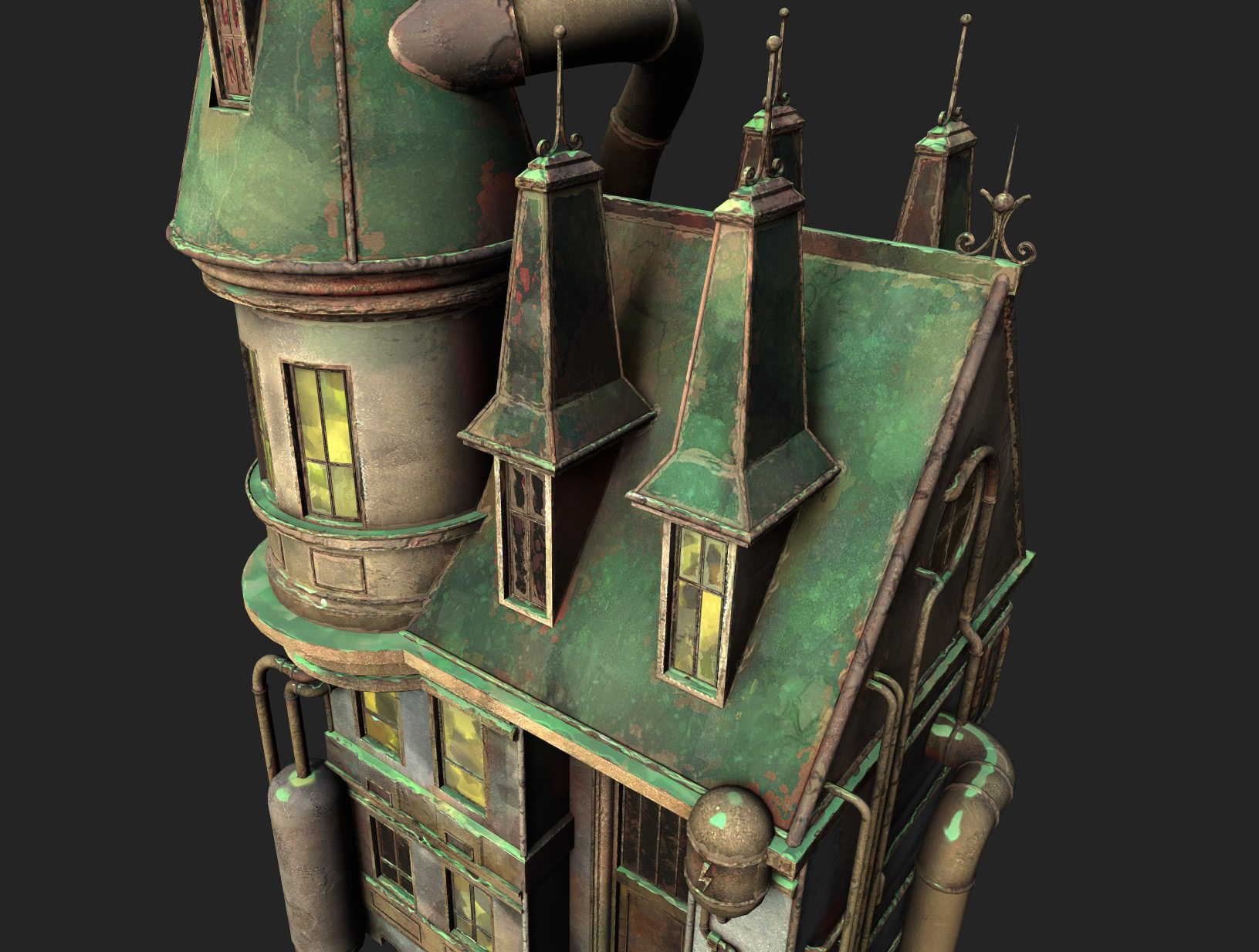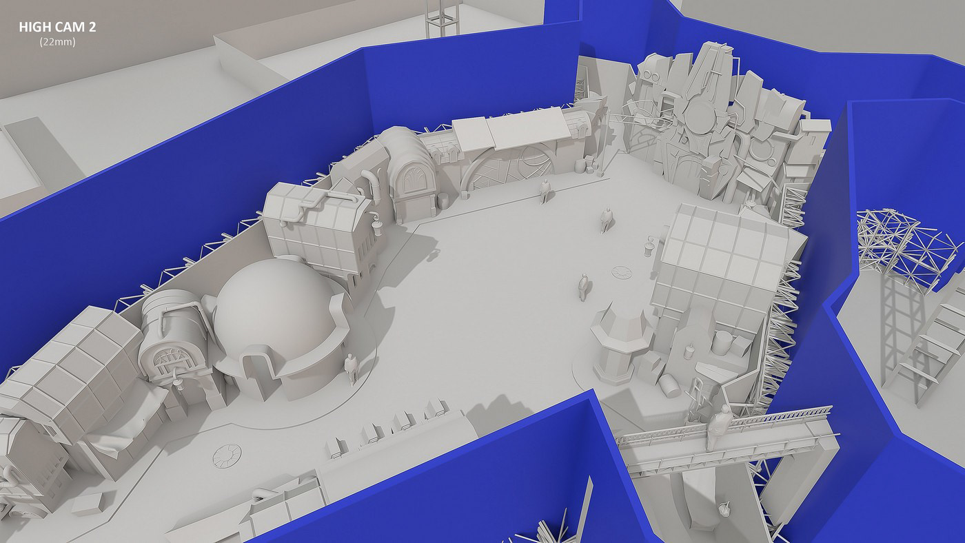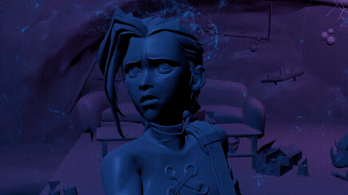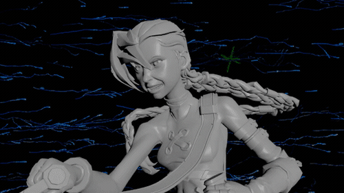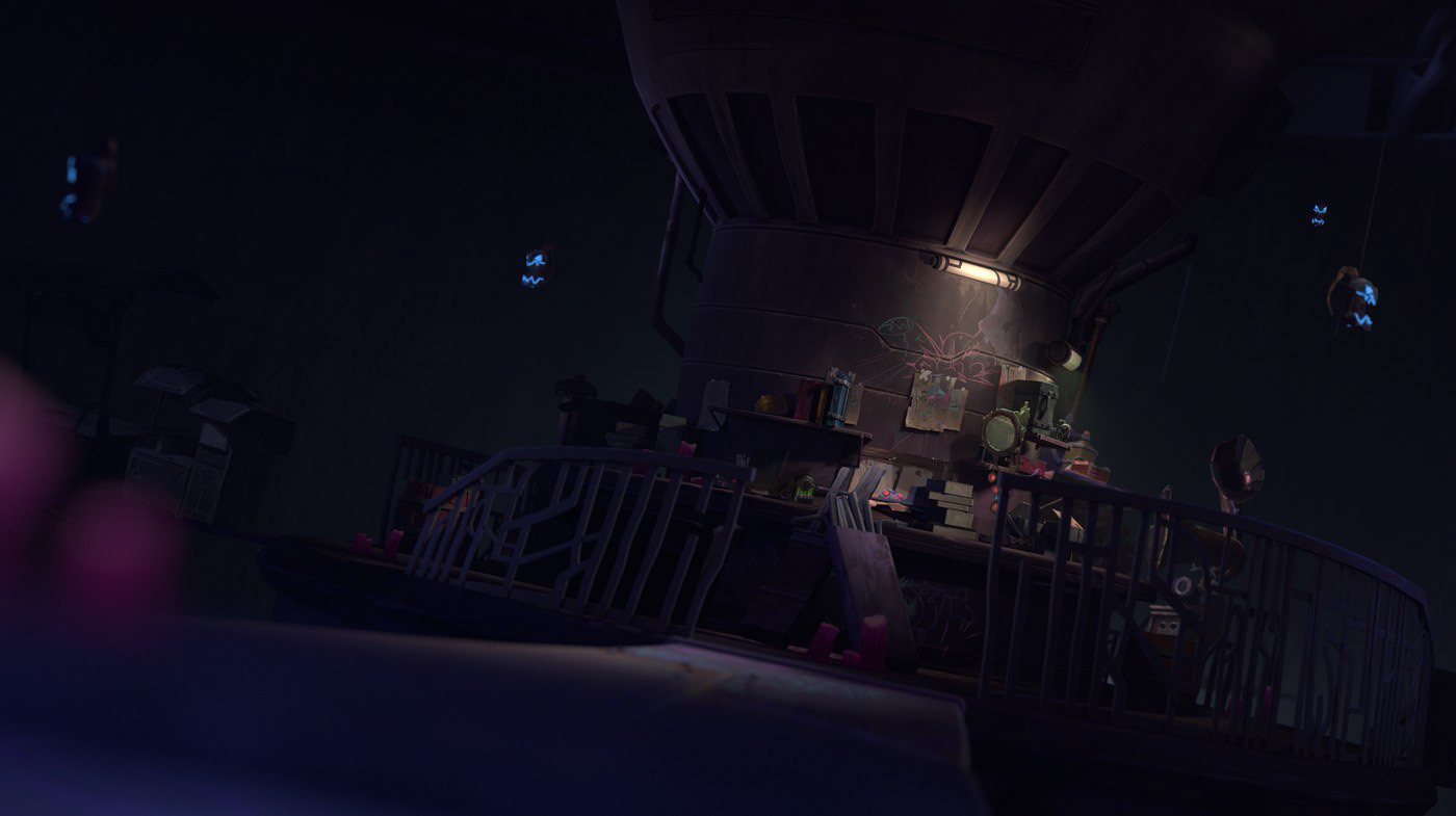 The chase ultimately leads us to Jinx's hideout, where Vi confronts her, hoping to find a piece of her sister still inside this manic force of nature. Their reunion is cut short when Jinx's demons prove too much for her damaged psyche. Using matte paintings from the animated series, we painstakingly recreated the environment in full 3D, giving us a dynamic location to stage Jinx's breakdown and the unstable Hextech explosion that she unwittingly unleashes.